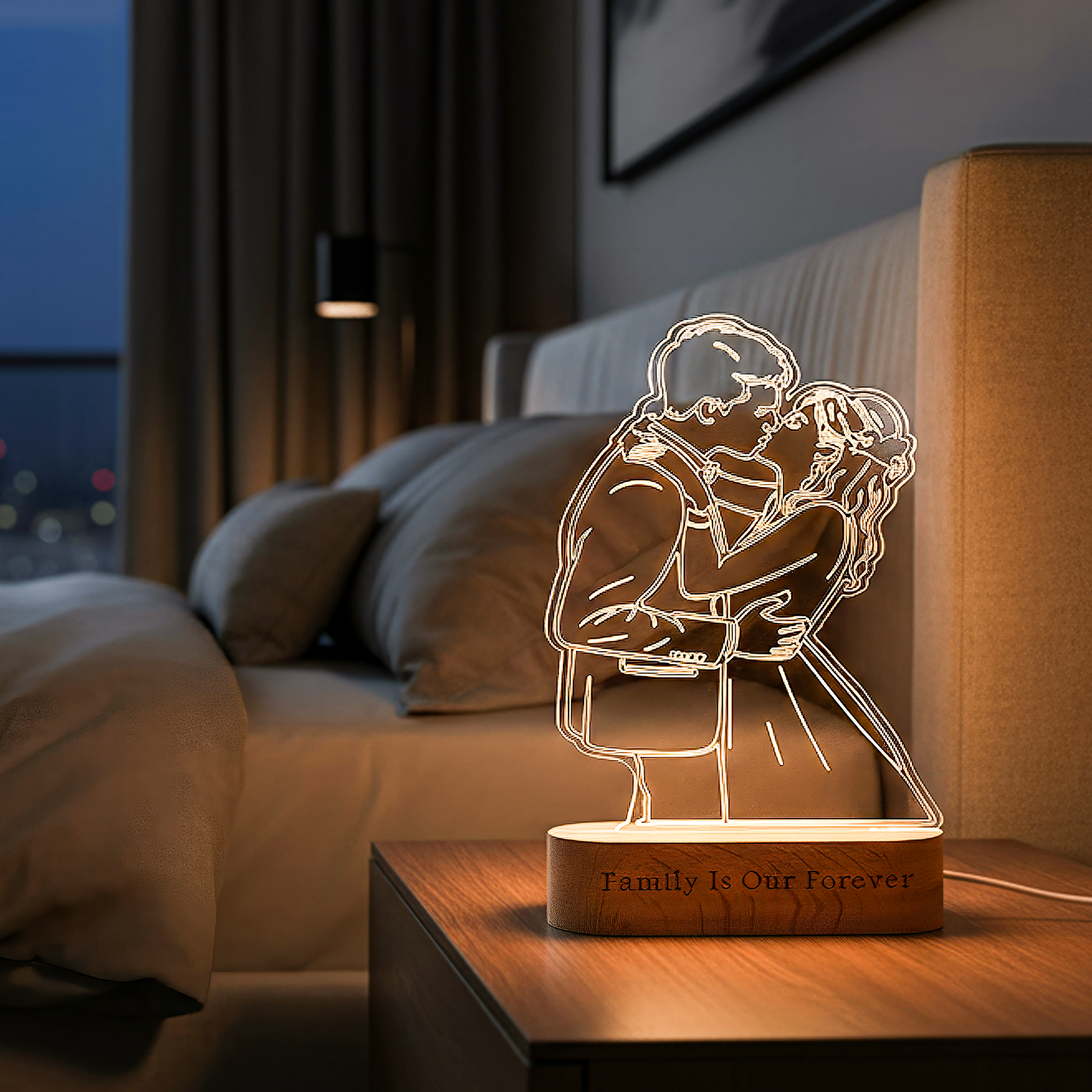 Your photo is carved into acrylic. Your message is engraved into the wood base, and delivered to your door ready to be gifted.