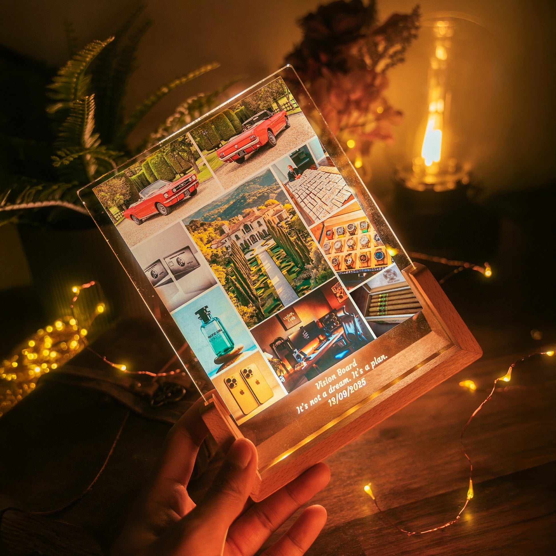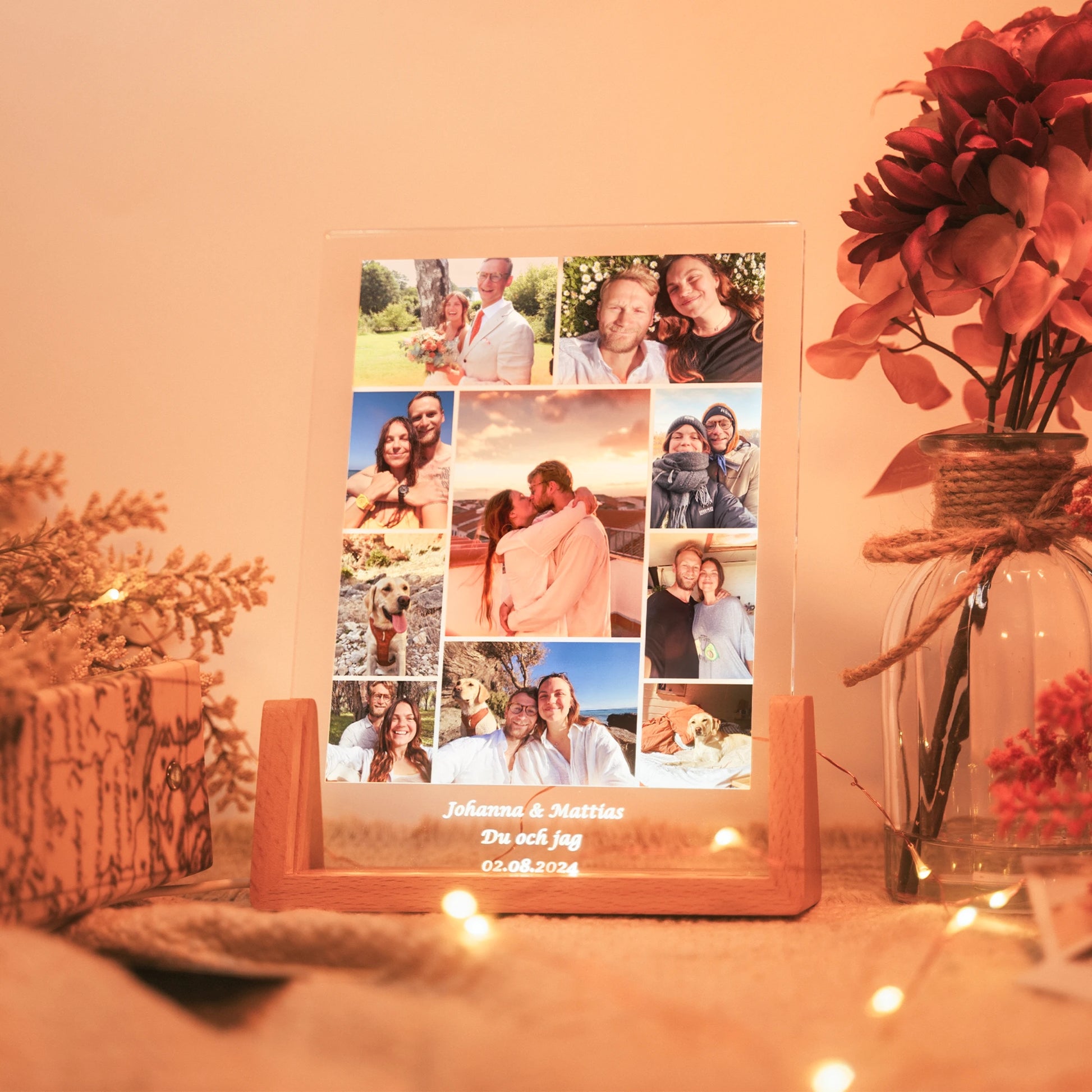 Your photo is carved into acrylic. Your message is engraved into the wood base, and delivered to your door ready to be gifted.
